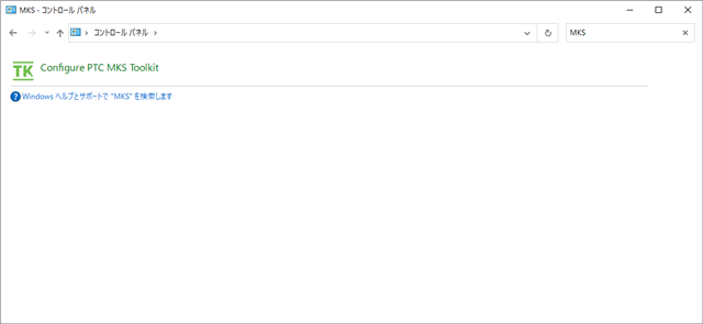 MKS Toolkitの設定状況を確認するには、コントロールパネルから"MKS"のキーワードで検索して、Configure PTC MKS Toolkitの項目を開きます。