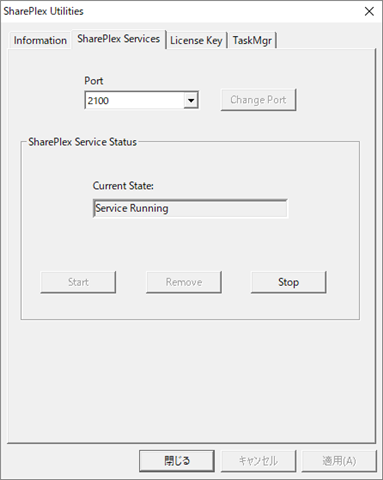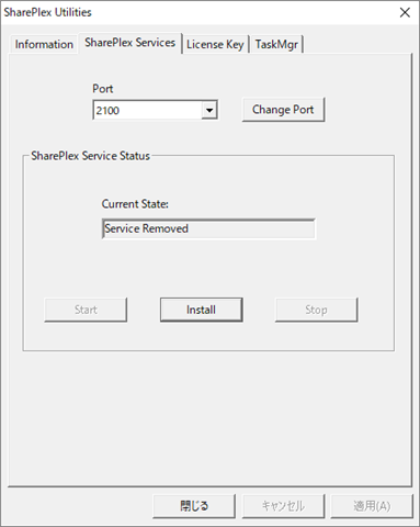 SpUtilsから、SharePlexのサービスをインストールしてStartにより起動させます。