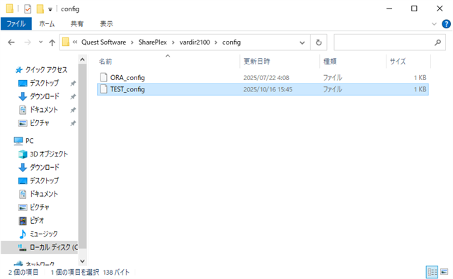 ※ファイル名の設定は自由なので、上記の書式は関係ない。ただ、デフォルトがORA_configというサンプル設定による。